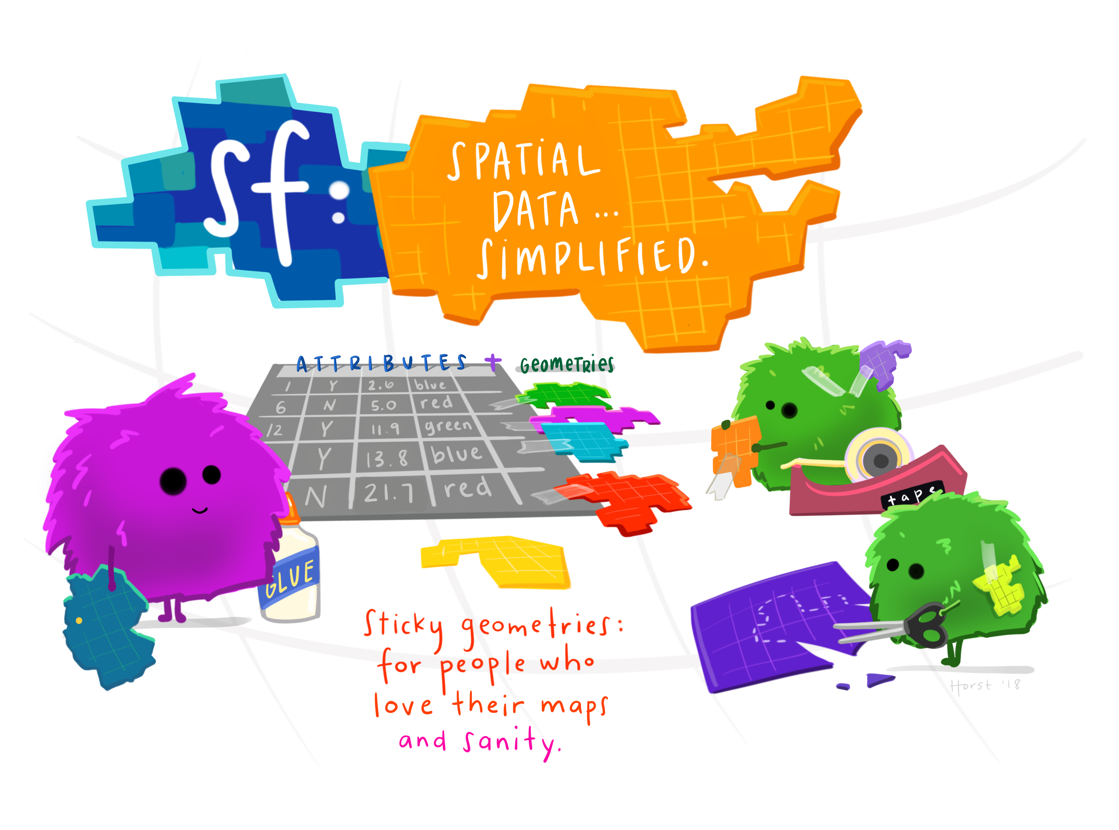 ggplot2sfsfsfsfsf is an R package for handling spatial data. It includes functions to read, write, modify, and plot spatial data.