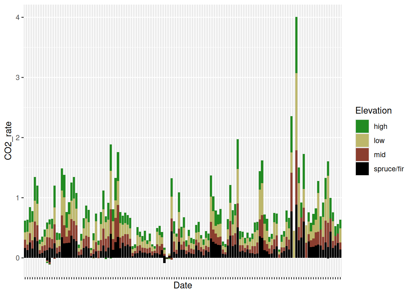 ggplot(data = data, mapping = aes(y = CO2_rate, x = Date, fill = Elevation)) +